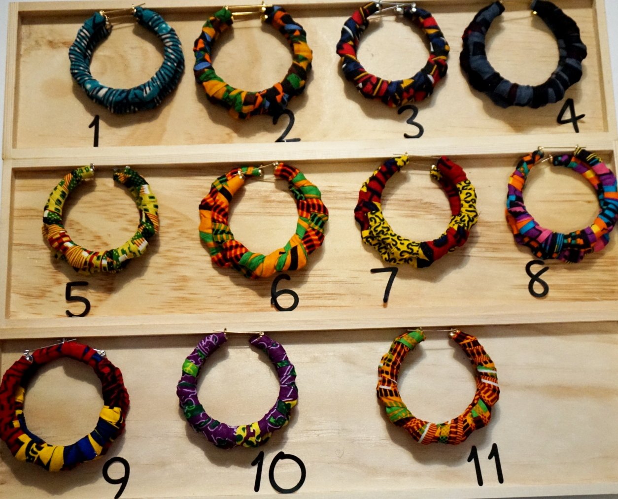 This listing is for 1 pair of Ankara or Kente Fabric Bamboo Hoop Earrings.